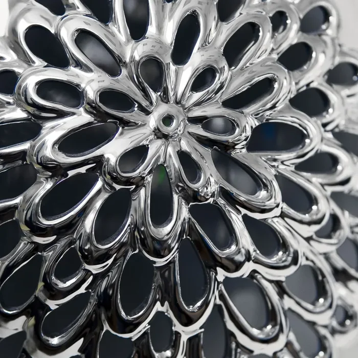 Vaso in Porcellana traforata Bianca smaltata con Fiore in platino argento.